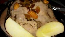 Lip Smacker (Nutritious and Easy) is a mouth-watering dessert prepared with Red banana, Apple, Low fat Milk, Almonds, Fresh cream, Coconut powder, Walnut, Brown Sugar, Vanilla essence and Lemon water. This is a different recipe for those who are bored eating raw fruits and nuts. It is a healthy start which can be served before breakfast as it contains the essential nutrients one must need to lead a healthy life. The apt time to eat fruits and nuts is half an hour before breakfast.